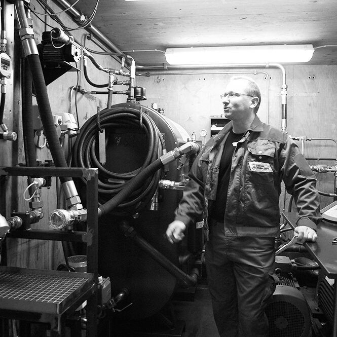Vores specialudviklede flushing-system er således integreret i en 10 fod container og lader sig transportere hvorhen det måtte være ønsket.